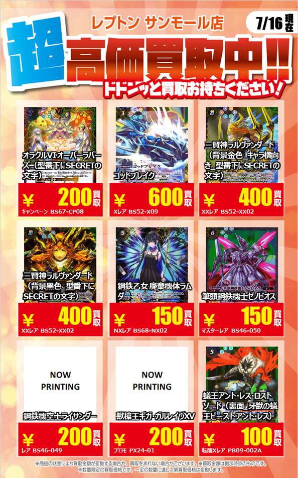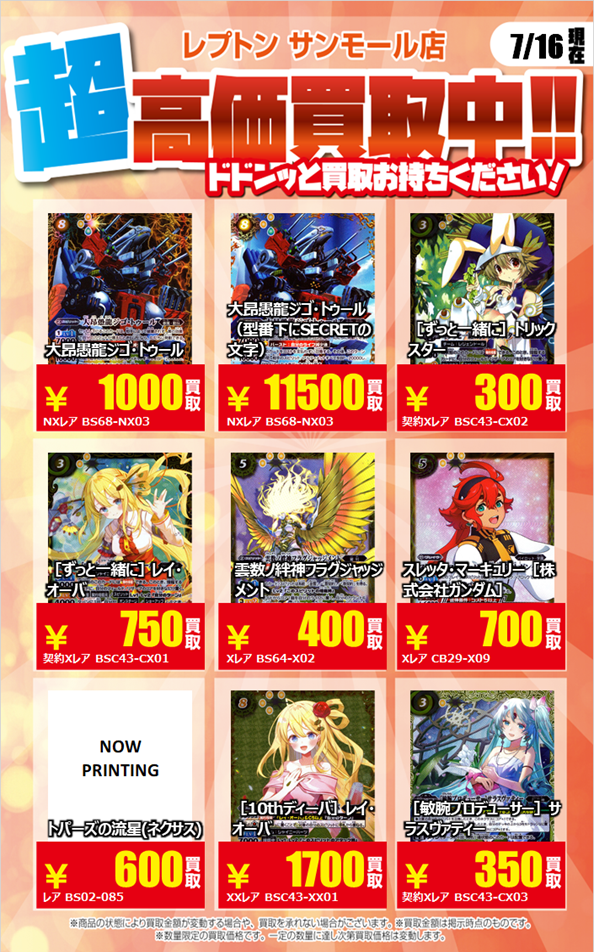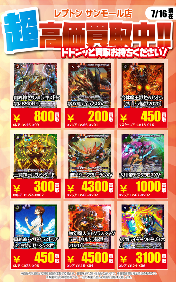 ※買取価格は相場、在庫状況等により予告なく変更する場合がございます。予めご了承ください。